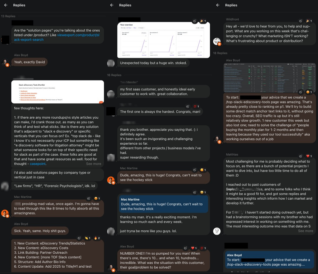 This isn’t another “founder Discord” filled with noise, auto-prompts, or narcissistic self-promoters (we do, however, try to subscribe to each others’ products when we can).
